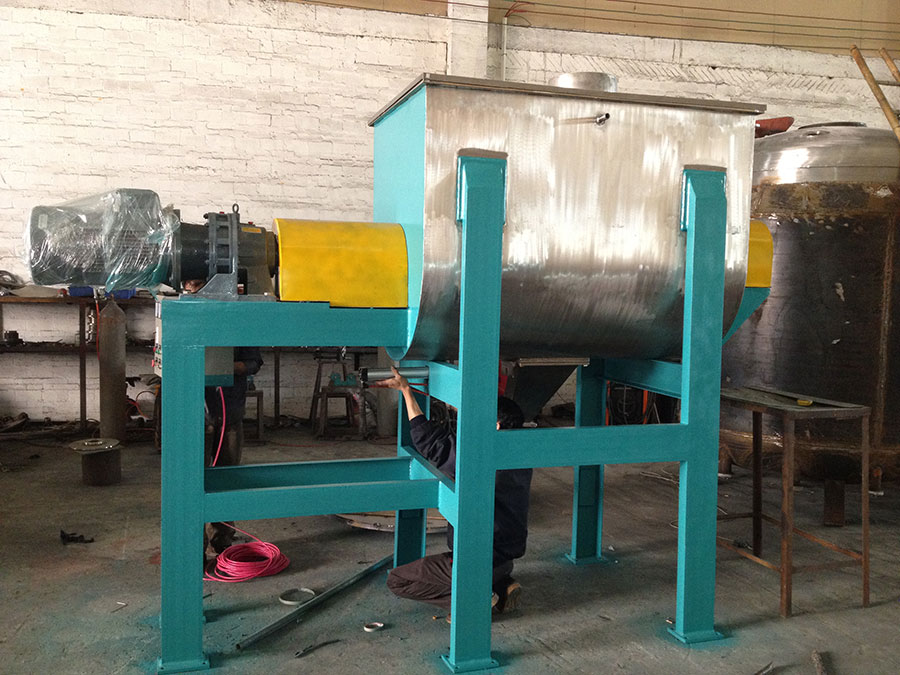 雙螺帶混合機(jī)是快速、應(yīng)用廣泛的單軸混合機(jī),U形半開管狀筒體內(nèi)安裝雙層異向螺帶盤繞的攪拌器軸。盤旋的螺旋帶依附主軸運(yùn)轉(zhuǎn),外螺旋帶在動(dòng)力的驅(qū)動(dòng)下,其盤繞形式配合旋轉(zhuǎn)方向把物料從U型倉兩端向中部地帶推動(dòng),能推使物料隨螺旋帶蝸旋方向推進(jìn),而內(nèi)螺旋帶把物料從中間向兩端推動(dòng),形成對(duì)流混合?;旌蠙C(jī)臥式筒體底部中部開設(shè)出料口,外層螺旋帶的蝸旋結(jié)構(gòu)配合主軸旋轉(zhuǎn)方向驅(qū)趕筒壁內(nèi)側(cè)物料至中部出料口出料,確保筒體內(nèi)物料出料無死角。筒蓋可做成投料口或全開式門,以便于對(duì)設(shè)備進(jìn)行清洗??稍诨旌蠙C(jī)筒體外增加夾套,通過向夾套內(nèi)注入冷熱介質(zhì)來實(shí)現(xiàn)對(duì)物料的冷卻或加熱;出料形式一般為氣動(dòng)、手動(dòng)閥,與筒內(nèi)壁較為齊平,減少物料堆積和混合死角現(xiàn)象。您可以提出您所需要的處理量、設(shè)備形式、規(guī)格要求或您需要加工的物料的性質(zhì),碩宸的銷售工程師會(huì)提供讓您滿意的方案。