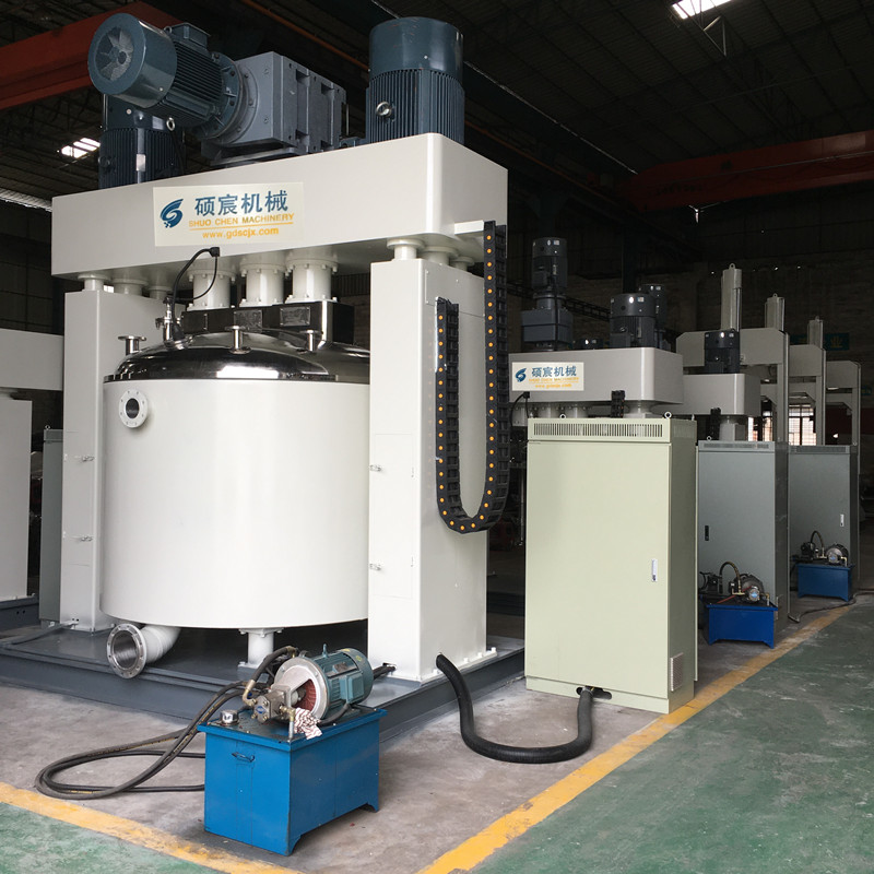 其中強力分散機(制膠機)是硅酮密封膠、玻璃膠、結(jié)構(gòu)膠的生產(chǎn)設(shè)備中的主要組成部分,也是硅酮膠、玻璃膠的整條生產(chǎn)線中為重要設(shè)備部分。強力分散機是一種快速攪拌機,有三個動力驅(qū)動的電動機,釜內(nèi)有三根不同形式、高低速結(jié)合的攪拌器;是一種應(yīng)用行業(yè)廣泛、密封性好、可抽真空、具有良好的脫泡效果、攪拌無死角、高低速結(jié)合、攪拌分散充分快速的混合攪拌設(shè)備。若想要了解更多的工況,您可以提出您所需要的處理量、設(shè)備形式、規(guī)格要求或您需要加工的物料的性質(zhì),根據(jù)您的情況碩宸的銷售工程師會提供讓您滿意的方案。